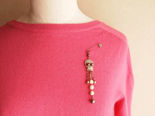 チャームについたクラスプでピンに留めているので、お手持ちのチェーンに付ければネックレスに変身!